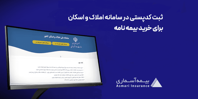 از این پس اگر قصد خرید بیمه شخص ثالث، بدنه، آتش سوزی و یا هر نوع بیمه دیگر را داشته باشید، باید ابتدا کدپستی محل سکونت خود را در سامانه املاک و اسکان به نشانی اینترنتی amlak.mrud.ir ثبت کنید؛ در غیر این صورت، امکان صدور بیمهنامه وجود نخواهد داشت.